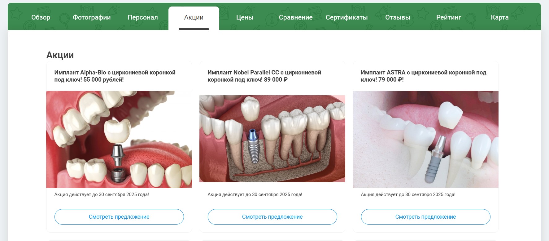 Центр с данной опцией размещается на главной странице в общем порядке. Чем выше вложения в тариф «Позиции на сайте», тем выше позиция.